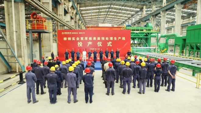 柳鋼實業(yè)寬厚板表面預(yù)處理生產(chǎn)線投產(chǎn)儀式現(xiàn)場。