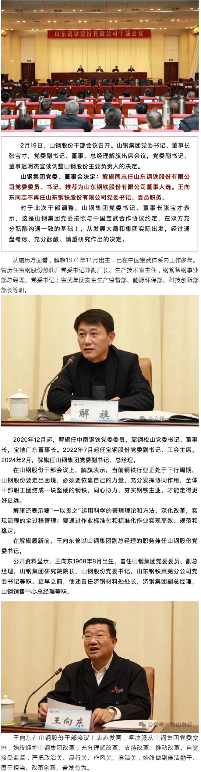 山鋼股份“換帥”:解旗任黨委書記,系山鋼集團總經理