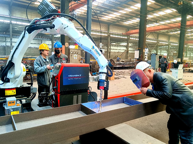 ▲激光電弧復(fù)合焊產(chǎn)線正在加工鋼結(jié)構(gòu)件