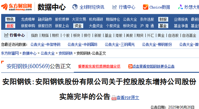 6月25日,安陽鋼鐵(600569)發布了安陽鋼鐵股份有限公司關于控股股東增持公司股份實施完畢的公告(以下簡稱“公告”)。