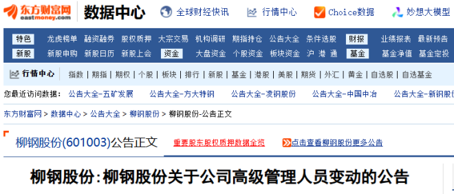 6月27日,柳鋼股份發布了《柳鋼股份關于公司高級管理人員變動的公告》。