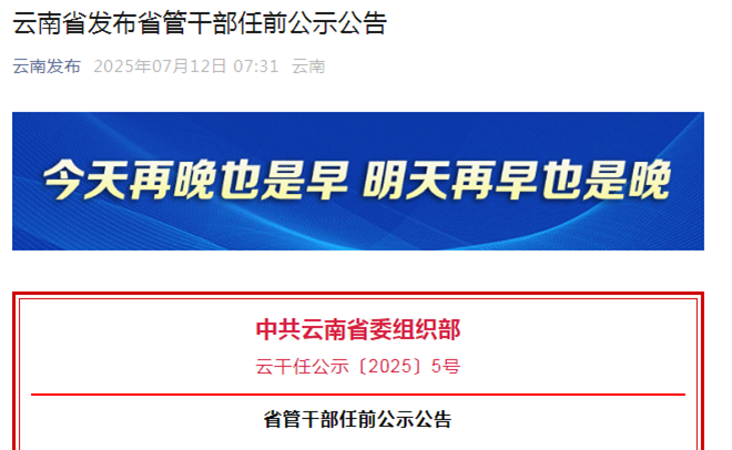 7月12日,中共云南省委組織部發(fā)布了云南省管干部任前公示公告,公布了16名同志擬任職務(wù)。