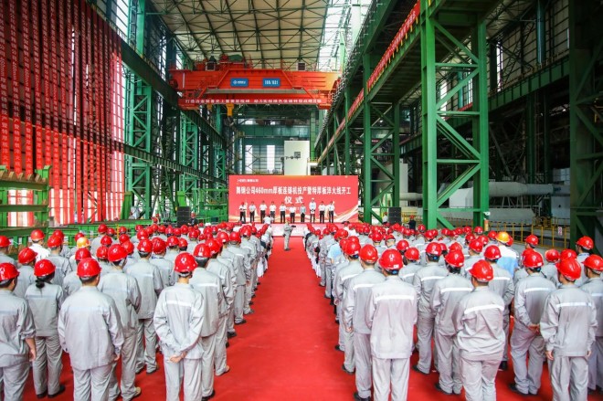 吝章國強調,特厚板淬火線項目的正式開工,標志著舞鋼公司將向鋼鐵材料性能的極限發起新的沖鋒,瞄準世界頂尖水平的特厚板熱處理工藝技術,以滿足最嚴苛工程應用環境、制造最尖端“國之重器”為目標,實現從“材料制造商”向“材料解決方案服務商”的重要跨越。未來在祖國的深藍海洋、極地冰原和浩瀚蒼穹,都將閃耀更多舞鋼公司供貨制造的“鋼筋鐵骨”和無上榮光。今天的投產與開工儀式,即是號角,更是起點!舞鋼公司將以“鋼鐵報國”的赤子之心,以“人無我有”的開拓進取精神,全力保障460mm厚板連鑄機高效穩定運行,高標準推進特厚板淬火線項目建設,共同書寫舞鋼公司更加壯麗、更加輝煌的新篇章,為集團的高質量發展,為中國鋼鐵工業的騰飛,為實現制造強國的偉大夢想,貢獻舞鋼公司的鋼鐵力量。