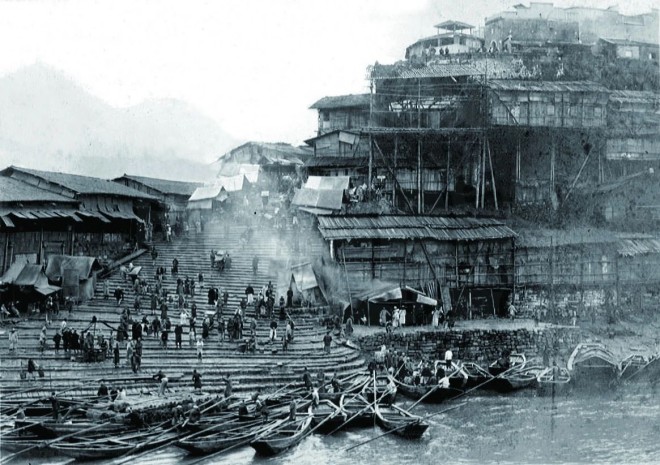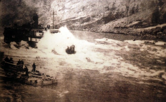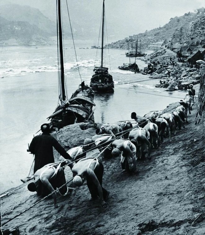 運(yùn)載工廠器材的小船在川江上艱難跋涉