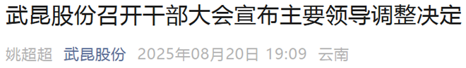 8月20日,公眾號武昆股份發(fā)布文章《武昆股份召開干部大會宣布主要領(lǐng)導(dǎo)調(diào)整決定》。