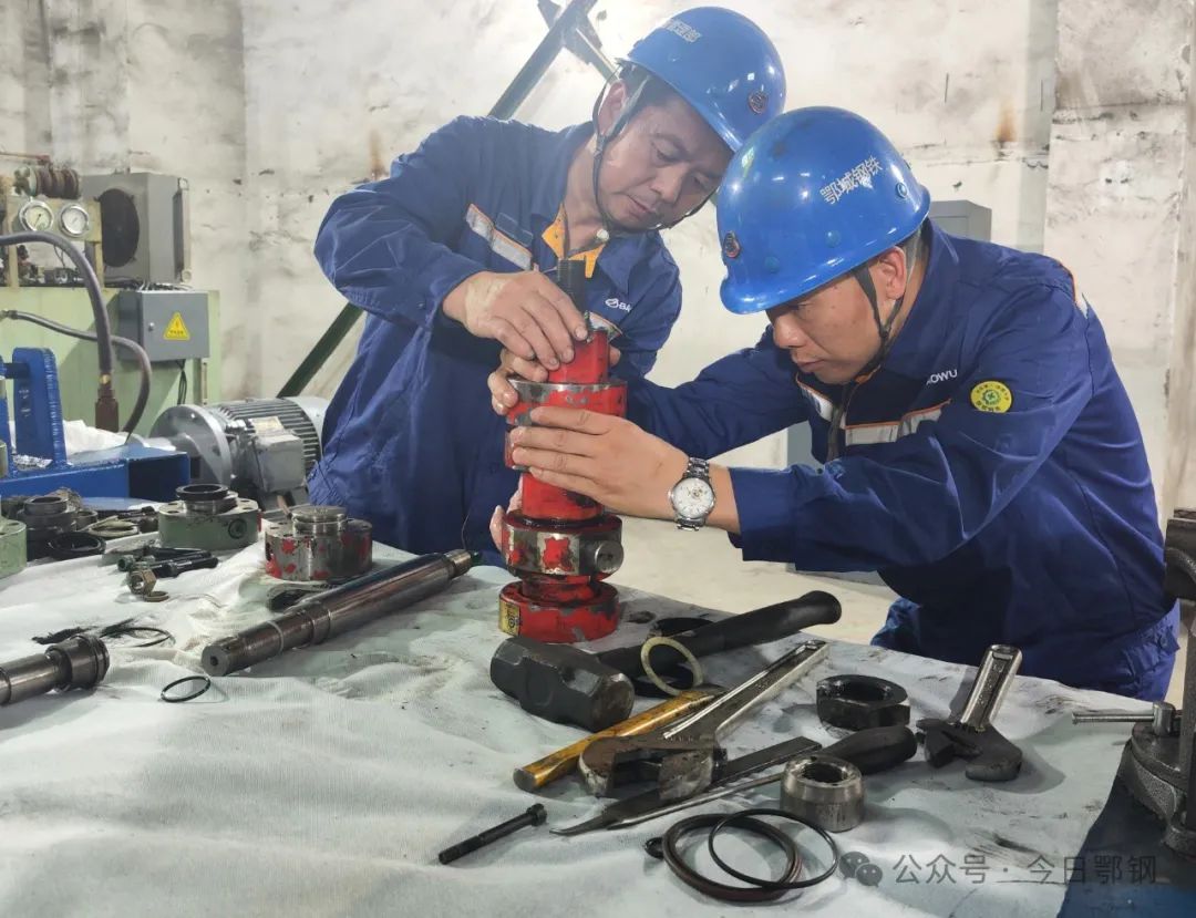 油氣缸是工業(yè)生產(chǎn)的核心動力部件,長期運行易磨損報廢。以往,損壞的油氣缸大多直接更換或外送維修,成本高昂。為破解這一難題,鄂城鋼鐵設(shè)備管理部抽調(diào)技術(shù)骨干,組建了一支涵蓋液壓、電氣、儀表、機械等多領(lǐng)域的專業(yè)化團隊。團隊成立后,迅速制定《油氣缸拆檢裝配操作規(guī)范》《油缸測試驗收標準》等技術(shù)文件,并赴相關(guān)企業(yè)開展對標學習,確保修復流程標準化、規(guī)范化。團隊成員利用工余時間加班加點,從焦化、煉鐵到軋鋼產(chǎn)線,全面收集下線油氣缸,高效完成修復任務,保障設(shè)備及時回裝。