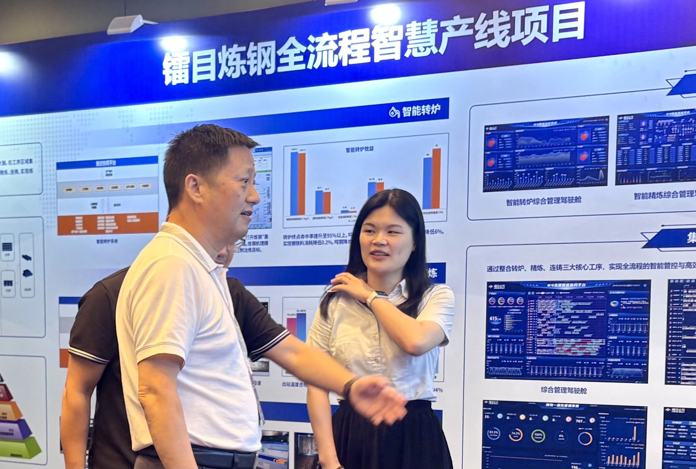 展覽現場,詳實的技術模型和具體的效益數據直觀呈現了項目價值,有力印證了“鐳目智能煉鋼,不造概念,只創效益”的理念。