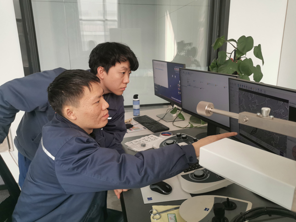 圖為新鋼青年科技人員利用蔡司掃描電鏡觀察鋼材內(nèi)部組織情況。