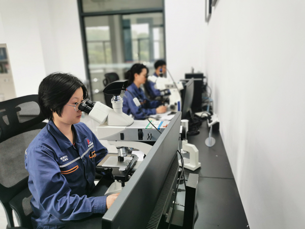 圖為新鋼技術(shù)中心金相檢測人員正在進行新品研發(fā)。
