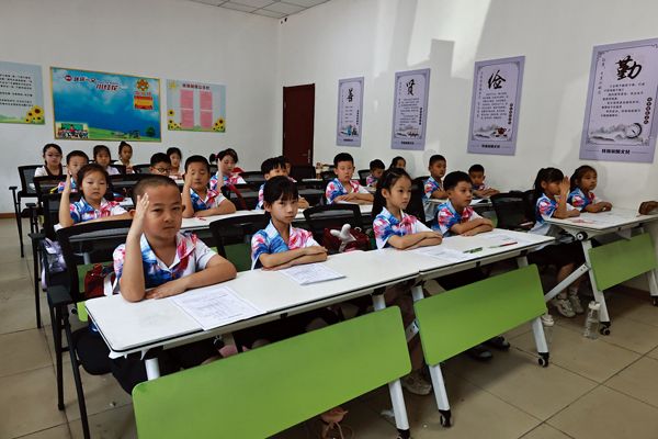 圖為托管班的孩子們在進行數學應用、英語開口說、中華詩詞解析等文化課學習。