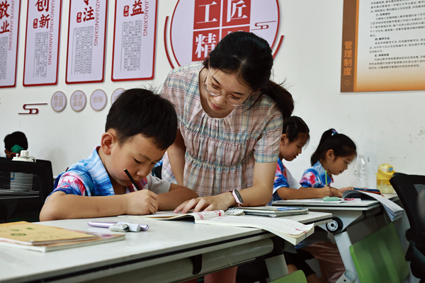 圖為專業教師輔導孩子寫作業。