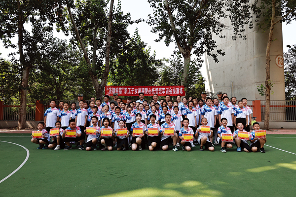 圖為“濟鋼鮑蓓”職工子女愛心托管班軍訓會操演練后合影。