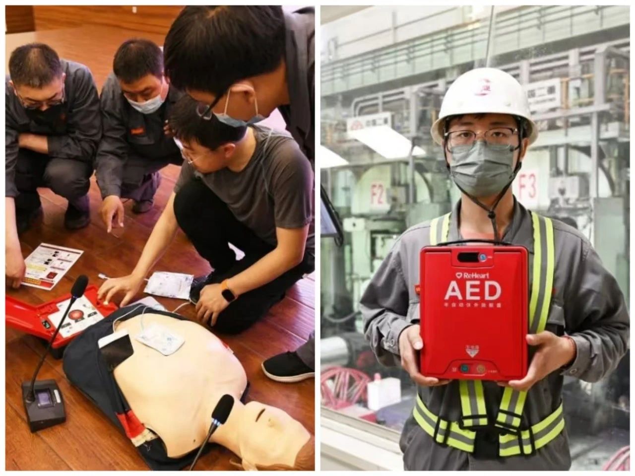 除了日常健康管理,突發(fā)狀況的應(yīng)急處置同樣關(guān)鍵。2022年,敬業(yè)集團(tuán)采購46臺(tái)半自動(dòng)體外除顫器(AED),精準(zhǔn)布點(diǎn)在廠區(qū)重要站點(diǎn)、酒店、景區(qū)、學(xué)校等人員密集場(chǎng)所,為生命搶救爭(zhēng)取黃金時(shí)間。為讓全員“會(huì)用、敢用”AED,健康管理中心邀請(qǐng)專業(yè)人員為全員講解院前急救、心肺復(fù)蘇及 AED 操作步驟并驗(yàn)收,讓急救技能成為全員必備的“生命護(hù)身符”。