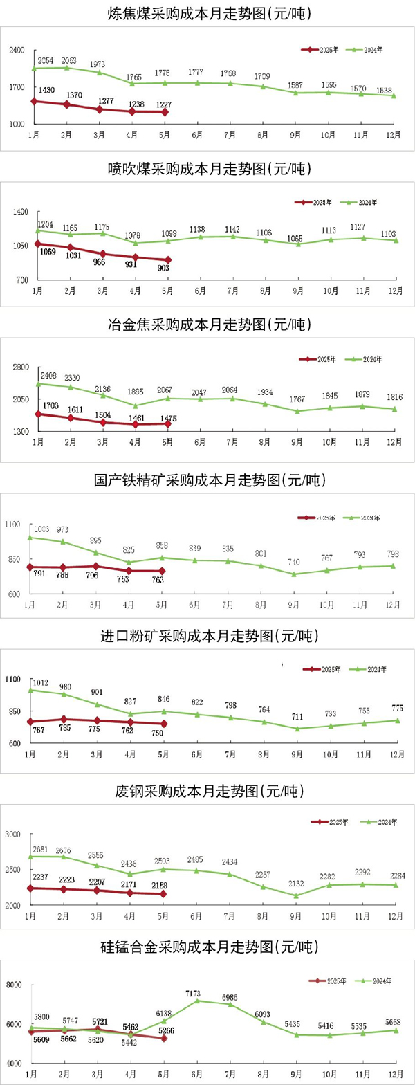 1月—5月份,除錳鐵合金外,其他各品種采購成本同比均大幅減少。