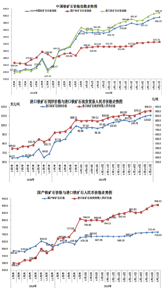 6月21日,現(xiàn)貨貿(mào)易進(jìn)口鐵礦石62%品位干基粉礦人民幣含稅價(jià)格為906.31