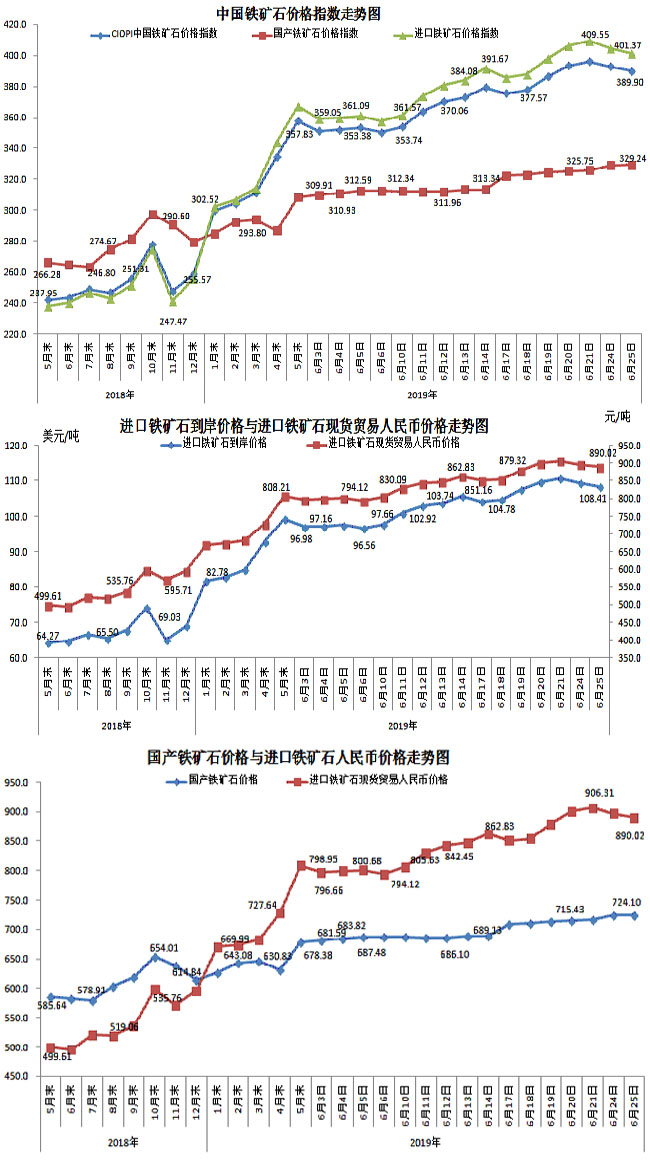 6月25日,現(xiàn)貨貿(mào)易進(jìn)口鐵礦石62%品位干基粉礦人民幣含稅價(jià)格為890.02