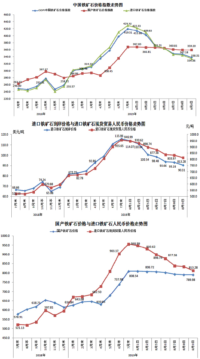 8月9日,中國鐵礦石價(jià)格指數(shù)(CIOPI)338.31點(diǎn),環(huán)比下降8.88點(diǎn),降幅為2.56%。其中:國產(chǎn)鐵礦石價(jià)格指數(shù)為359.20點(diǎn),環(huán)比下降0.02點(diǎn),降幅為0.01%;進(jìn)口鐵礦石價(jià)格指數(shù)為334.36點(diǎn),環(huán)比下降10.55點(diǎn),降幅為3.06%。