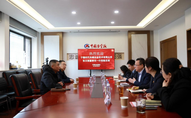 3月5日,寧德時代負碳冶金技術有限公司(以下簡稱寧德時代負碳冶金)董事長張文斌到訪中國冶金報社,與中國鋼鐵工業協會副秘書長,中國冶金報社黨委書記、社長范鐵軍等圍繞鋼鐵行業綠色低碳發展主題進行了座談交流,并就下一步合作達成共識。