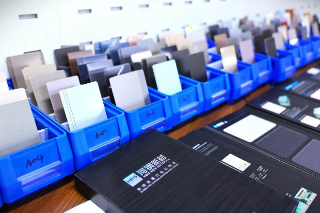 “近年來,消費者對涂鍍鋼板提出了更高的產品升級需求,我們把鋼鐵做成多姿多彩的家庭藝術品,通過創新創造,讓鋼鐵支撐消費者的美好生活。”大河金屬研發部CMF設計中心主管孫爽表示。她的工作室有一面墻,墻上掛滿了全世界能夠搜集到的各種材質、各種圖案的材料,作為設計靈感之源。