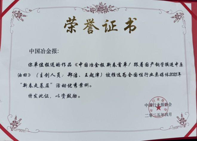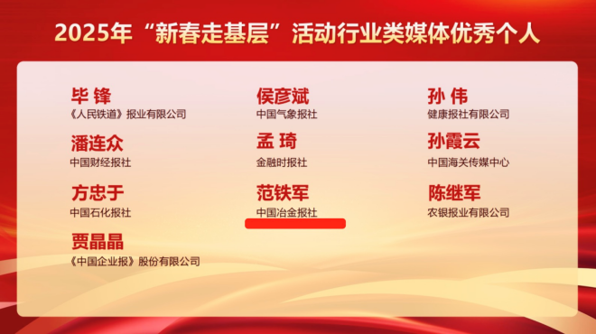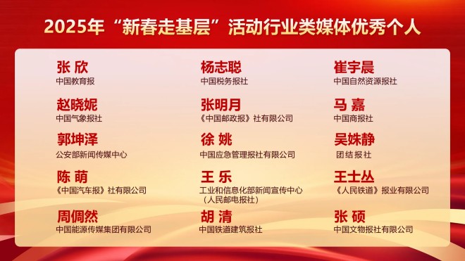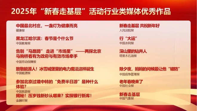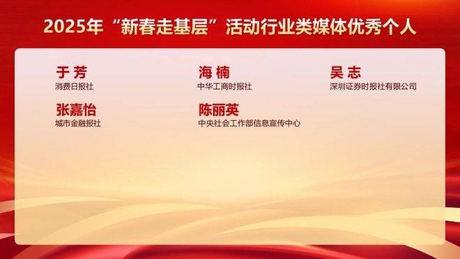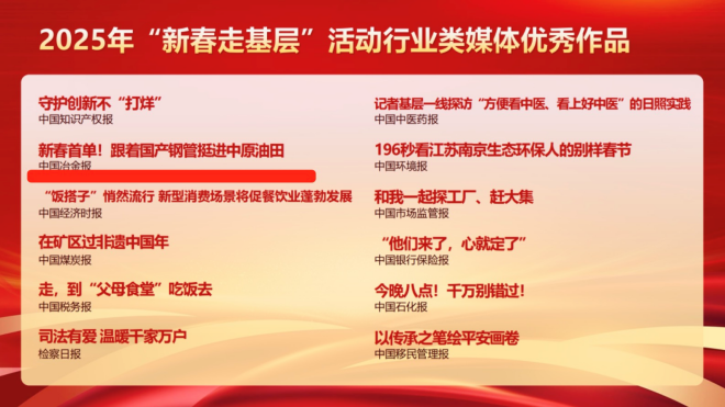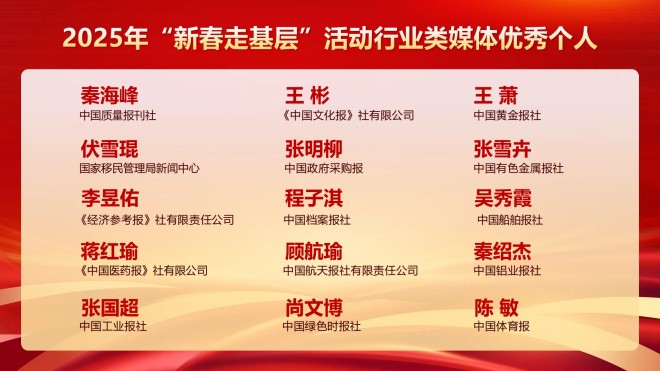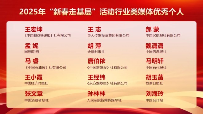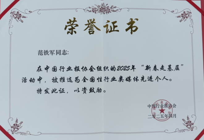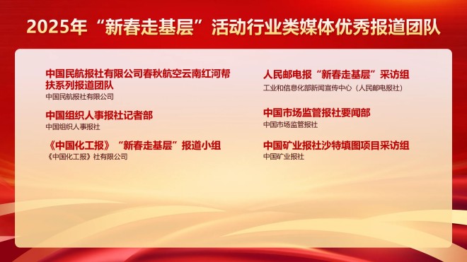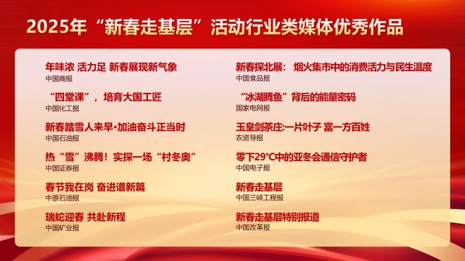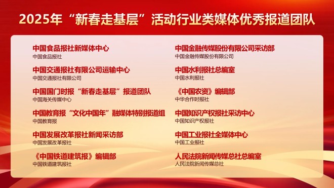 4月27日,中國行業(yè)報(bào)協(xié)會發(fā)布了行業(yè)類媒體2025年“新春走基層”活動優(yōu)秀作品和優(yōu)秀報(bào)道團(tuán)隊(duì)、個(gè)人名單。對30個(gè)行業(yè)類媒體優(yōu)秀報(bào)道團(tuán)隊(duì)、60名行業(yè)類媒體優(yōu)秀個(gè)人、60件行業(yè)類媒體優(yōu)秀作品進(jìn)行推介。