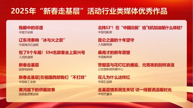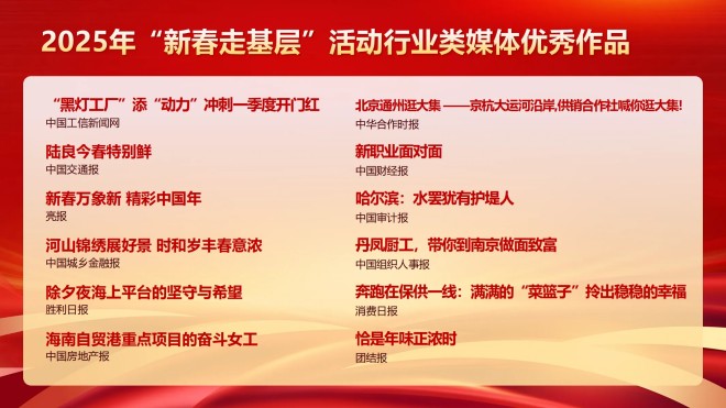 縱觀2025年行業(yè)類媒體“新春走基層”活動,突出特點(diǎn)是站位高、謀劃早、立意新、采訪實(shí)、覆蓋廣、影響大。協(xié)會將認(rèn)真總結(jié)經(jīng)驗(yàn)做法、提煉特色亮點(diǎn),形成可參考可復(fù)制的工作模式,以此指導(dǎo)日?!白呋鶎印辈稍L活動。
