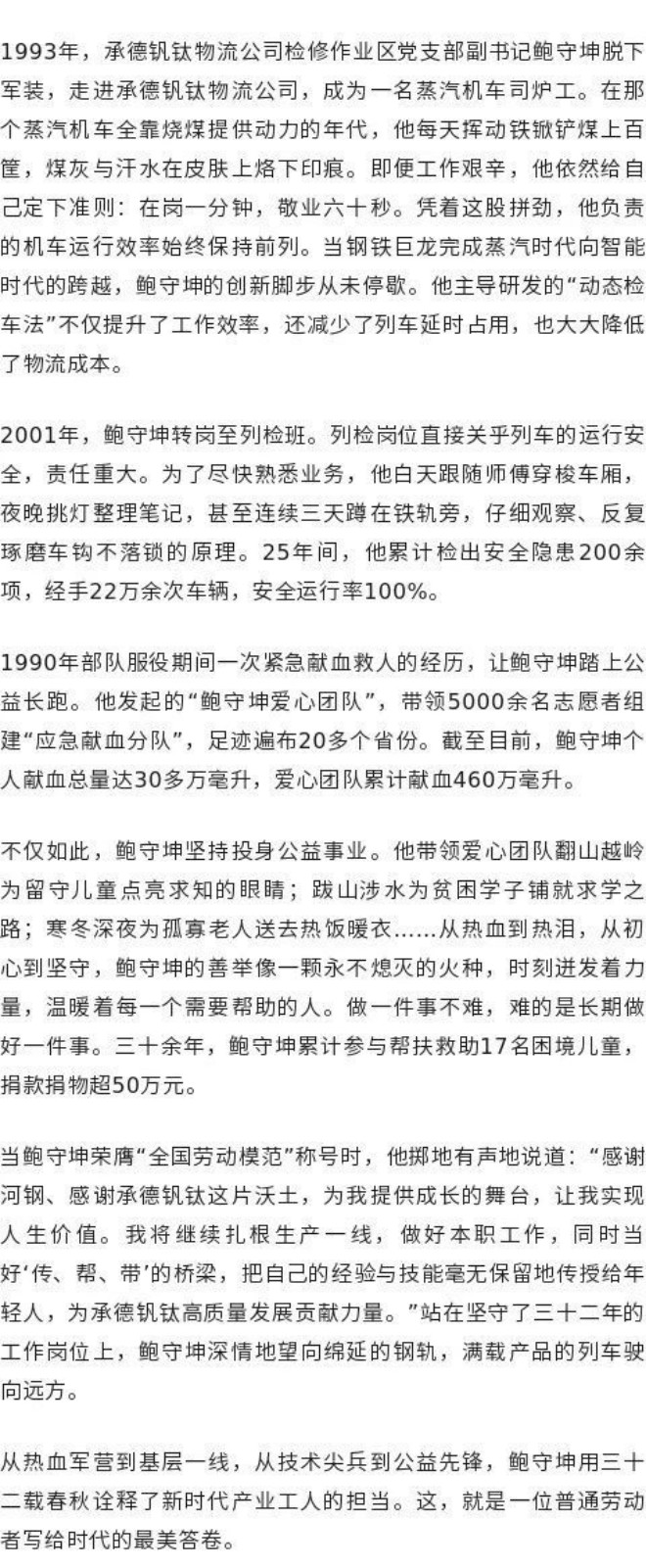 扎根一線守初心 三十二載鑄匠魂——記全國勞動模范、承德釩鈦物流公司檢修作業(yè)區(qū)黨支部副書記鮑守坤
