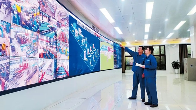 河鋼集團石鋼公司持續發展壯大智能制造矩陣,入選全國首批“數字領航”企業和首批卓越級智能工廠。圖為石鋼安全生產管控中心。