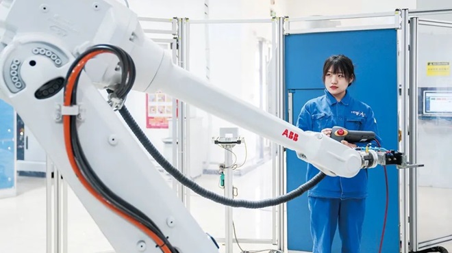 河鋼集團石鋼公司推進實施全流程數字化、智能化管理,成為國內鋼鐵行業數字化轉型標桿。圖為石鋼職工正在調試機械手臂。