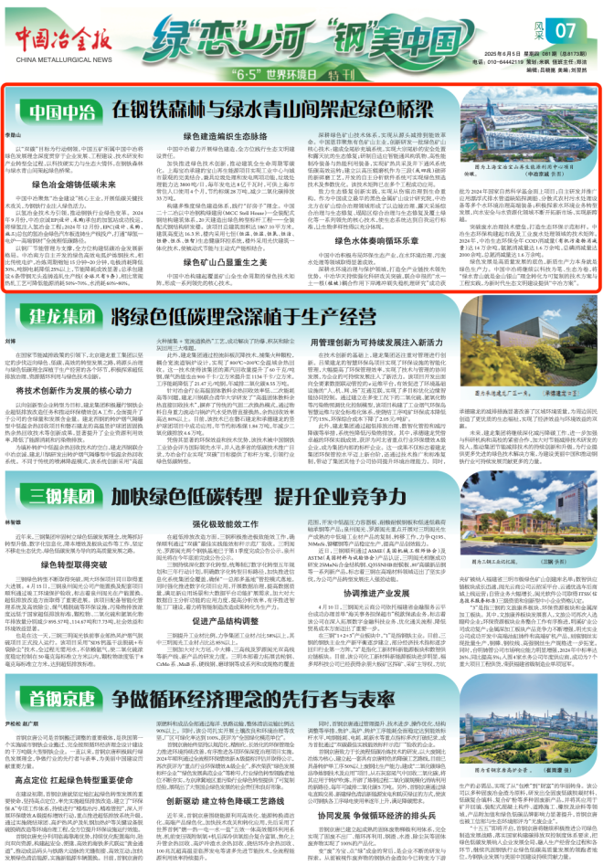 以“雙碳”目標為行動綱領(lǐng),中國五礦所屬中國中冶將綠色發(fā)展理念深度貫穿于企業(yè)發(fā)展、工程建設(shè)、技術(shù)研發(fā)和產(chǎn)業(yè)轉(zhuǎn)型全過程,以科技硬實力與生態(tài)大情懷,在鋼鐵森林與綠水青山間架起綠色橋梁。