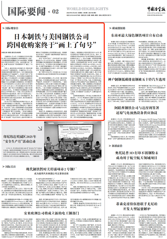 回顧收購案進程,今年初以來該案歷經多重波折。1月3日,拜登政府以國家安全為由簽發收購禁令。1月6日,日本制鐵與美國鋼鐵公司聯合起訴拜登政府及美國外國投資委員會(CFIUS)。5月23日,特朗普宣稱雙方將達成“計劃中的合作伙伴關系”。5月24日,《日本經濟新聞》指出,特朗普表態恰逢日美第三輪關稅談判關鍵節點。5月25日,日本《每日新聞》報道特朗普承諾“美鋼繼續留在美國”,并創造7萬個崗位及140億美元投資。“隨著收購落地,日本制鐵拼完了其全球擴張戰略中的‘最后一塊拼圖’。”《日本經濟新聞》如是總結道。