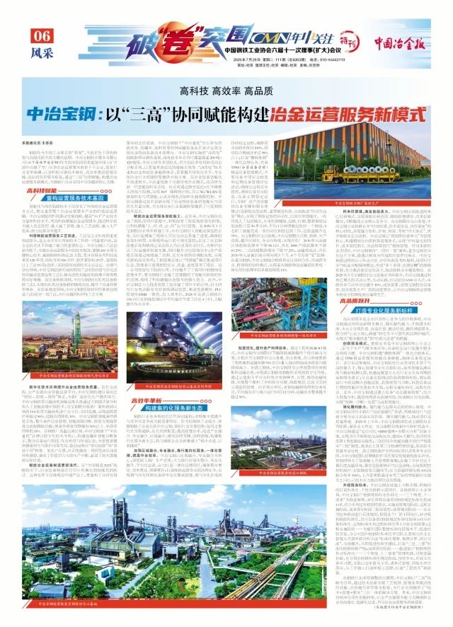 在鋼鐵行業(yè)深度調(diào)整的關(guān)鍵期,中冶寶鋼以“三高”戰(zhàn)略為引領(lǐng),通過技術(shù)創(chuàng)新突破工藝瓶頸、管理變革激活組織效能、品質(zhì)提升筑牢服務(wù)根基,為行業(yè)突圍提供了“技術(shù)+管理+服務(wù)”三位一體的解決方案。未來,中冶寶鋼將持續(xù)深化綠色智能轉(zhuǎn)型,以全產(chǎn)業(yè)鏈服務(wù)能力支撐鋼鐵企業(yè)向高端化、低碳化邁進(jìn),書寫冶金運(yùn)營服務(wù)的新篇章。(王蕓蕓)