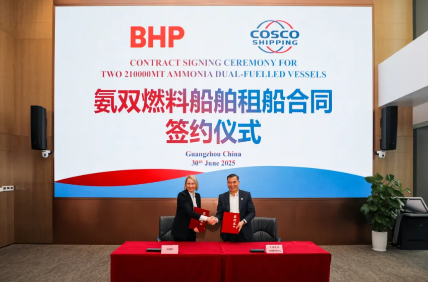中遠(yuǎn)海運(yùn)集團(tuán)副總裁林戟表示:“中遠(yuǎn)海運(yùn)與必和必拓的合作可以追溯多年。作為全球礦產(chǎn)資源與航運(yùn)領(lǐng)域的杰出代表,雙方始終秉持著‘互利共贏’的理念,攜手面對(duì)行業(yè)挑戰(zhàn),共同推動(dòng)供應(yīng)鏈效率提升與凈零排放轉(zhuǎn)型。今天我們簽署的這兩艘21萬(wàn)噸氨燃料雙燃料散貨船合同,不僅是雙方合作與時(shí)俱進(jìn)、攜手推動(dòng)替代船用燃料的重要成果,更是‘澳大利亞-中國(guó)綠色航運(yùn)走廊’建設(shè)的又一標(biāo)志性實(shí)踐。氨是最具潛力的零碳船用燃料之一,此次船型的落地,是全球散貨航運(yùn)領(lǐng)域向零碳邁進(jìn)的重要里程碑。它不僅代表著技術(shù)和環(huán)保的雙重突破,也彰顯了我們對(duì)堅(jiān)定支持全球氣候行動(dòng)、實(shí)現(xiàn)中國(guó)雙碳目標(biāo)的擔(dān)當(dāng)與信心。”