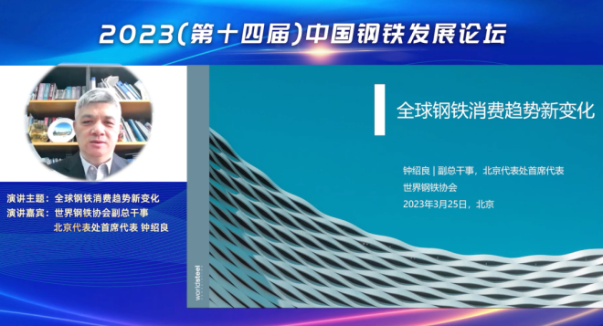 鐘紹良通過視頻做主題報告《全球鋼鐵消費趨勢新變化》。