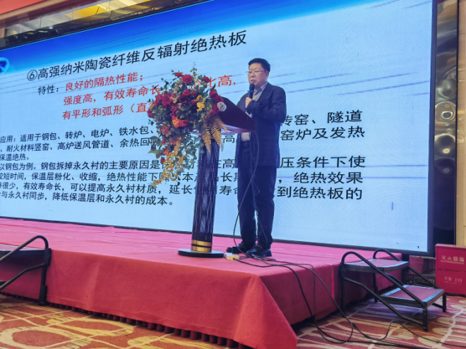 營口創(chuàng)興科技有限公司董事長楊恩良介紹《營口創(chuàng)興科技研制生產(chǎn)的高強納米絕熱板在冶金、耐材窯爐的應(yīng)用》,分享創(chuàng)新產(chǎn)品應(yīng)用實踐。