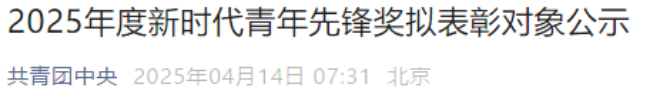 4月14日,從共青團(tuán)中央獲悉,經(jīng)黨和國(guó)家功勛榮譽(yù)表彰工作委員會(huì)辦公室同意,共青團(tuán)中央、全國(guó)青聯(lián)開(kāi)展了2025年度新時(shí)代青年先鋒獎(jiǎng)評(píng)選工作。經(jīng)省級(jí)團(tuán)委推薦、評(píng)審委員會(huì)評(píng)審,確定679名新時(shí)代青年先鋒獎(jiǎng)擬表彰對(duì)象。現(xiàn)對(duì)擬表彰對(duì)象進(jìn)行公示。其中,鋼鐵行業(yè)多人入選!