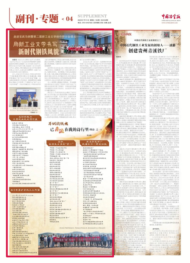 為深入學習貫徹習近平文化思想、習近平總書記關于文藝創作及考察調研馬鋼的重要講話精神,搭建新工業文學創作交流平臺,激發冶金文學創作靈感,促進新工業文學創作出作品、創精品,更好地推動冶金文學事業繁榮發展,6月30日,走進寶武馬鋼暨第二屆新工業文學創作研討會在馬鋼舉辦。