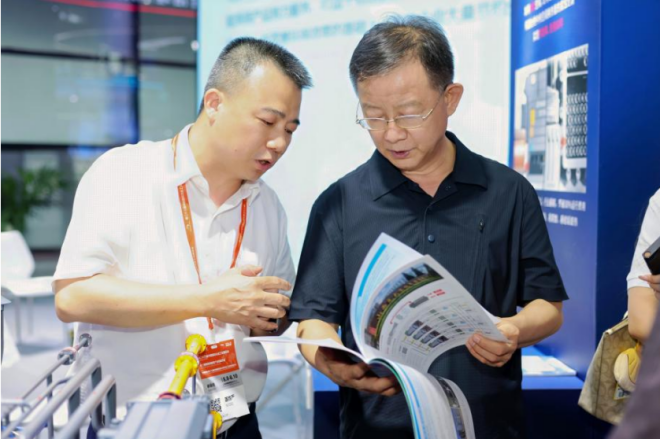 圖為河北省工業(yè)和信息化廳副廳級(jí)領(lǐng)導(dǎo)干部宋向黨參觀展臺(tái)