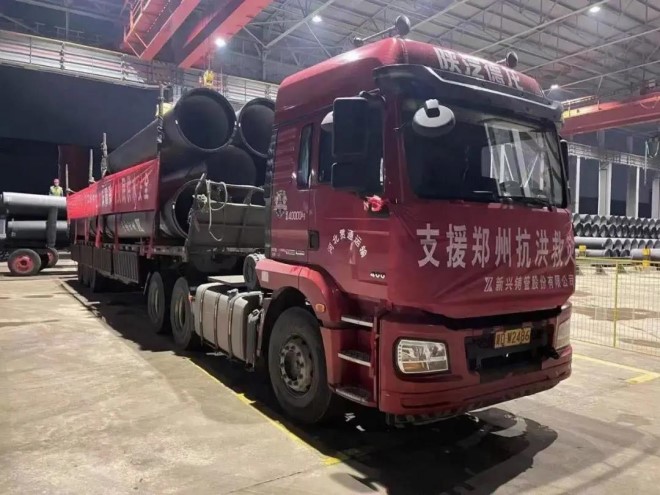此外,7月22日,新興鑄管鄭州銷售分公司接到鄭州自來水控股有限公司急需應(yīng)急供水管材任務(wù),立刻開展離心球墨鑄鐵管調(diào)配工作,聯(lián)系就近生產(chǎn)基地連夜發(fā)運(yùn)所需管材。22日晚21點(diǎn),鑄管管材從河北武安發(fā)運(yùn)。
