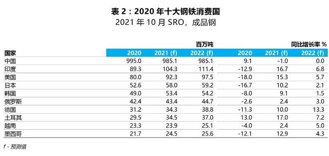 在拉丁美洲,除巴西之外,其他地區的鋼鐵需求在2020年都遭遇疫情的沉重打擊。但在2021年,由于建筑業和汽車業以及補充庫存等原因,該地區出現令人驚訝的強勢復蘇。不過,2022年,由于該地區要努力應對復合結構問題,包括高通貨膨脹、高財政赤字以及政局不穩,因此該地區的復蘇勢頭將會顯著減弱。