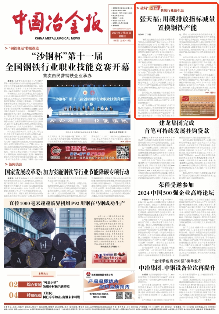 在國(guó)家倡導(dǎo)綠色低碳發(fā)展的大背景下,未來(lái)碳排放必將成為約束鋼鐵企業(yè)粗鋼產(chǎn)量指標(biāo)的重要依據(jù)。張?zhí)旄=ㄗh國(guó)家在減量置換鋼鐵產(chǎn)能時(shí),擴(kuò)大綠色低碳比例,將碳排放作為主要指標(biāo)置換鋼鐵產(chǎn)能,加快淘汰落后產(chǎn)能,破解行業(yè)“內(nèi)卷”難題,為行業(yè)高質(zhì)量發(fā)展賦能。(劉加軍 丁衛(wèi)國(guó))
