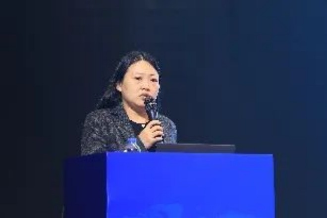 圖為王明月介紹低碳排放鋼評(píng)價(jià)標(biāo)準(zhǔn)進(jìn)展