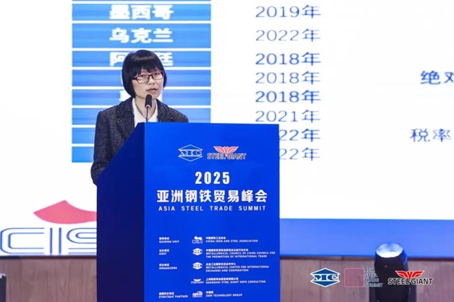 蔣璇芳介紹了中國鋼鐵市場與進出口情況。她分析指出,亞非市場是全球最大的鋼鐵市場,占全球粗鋼產量的78%,消費量的76%。在貿易政策不斷變化的大背景下,亞非市場的穩定對全球鋼鐵貿易非常重要。2024年,我國鋼材出口前十大目的國中有9個在亞洲,向亞洲出口鋼材7528萬噸,占出口總量的68%。2024年國外對中國鋼鐵產品新發起的貿易救濟調查達33起,部分將于2025年裁決,對中國鋼材出口有一定影響。2025年美國對鋼鋁關稅進行政策調整,對主要貿易伙伴加征“對等關稅”,將影響全球鋼鐵貿易,部分受影響的國家可能采取措施保護本國產業,從而進一步影響全球鋼鐵貿易環境。