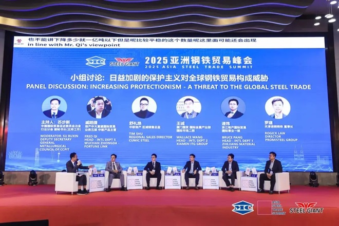 圖為“日益加劇的保護主義對全球鋼鐵貿易構成威脅”小組討論現場