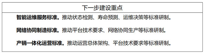 大規(guī)模個性化定制標(biāo)準(zhǔn)主要包括通用要求、需求交互要求、設(shè)計要求、生產(chǎn)要求等標(biāo)準(zhǔn);智能運維服務(wù)標(biāo)準(zhǔn)主要包括通用要求、數(shù)據(jù)接口、狀態(tài)監(jiān)測、故障診斷、壽命預(yù)測、運維決策等標(biāo)準(zhǔn);網(wǎng)絡(luò)協(xié)同制造標(biāo)準(zhǔn)主要包括平臺技術(shù)要求、資源模型要求、協(xié)同經(jīng)營管理、網(wǎng)絡(luò)協(xié)同設(shè)計、網(wǎng)絡(luò)協(xié)同生產(chǎn)等標(biāo)準(zhǔn);產(chǎn)銷一體化運營主要包括運營總體架構(gòu)、平臺技術(shù)要求、數(shù)據(jù)分類規(guī)范等標(biāo)準(zhǔn);其他主要包括上述四類以外的智能制造新模式的通用要求和服務(wù)交付等標(biāo)準(zhǔn)。