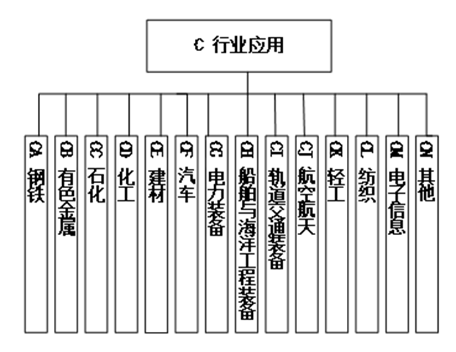 主要包括鋼鐵、有色金屬、石化、化工、建材、汽車、電力裝備、船舶與海洋工程裝備、軌道交通裝備、航空航天、輕工、紡織、電子信息及其他等14個部分,如圖12所示。發(fā)揮國家標(biāo)準(zhǔn)體系指導(dǎo)作用,結(jié)合行業(yè)特色,聚焦行業(yè)近3年亟待解決的問題,分析國家基礎(chǔ)共性、關(guān)鍵技術(shù)標(biāo)準(zhǔn)適用性,在選取適用基礎(chǔ)共性、關(guān)鍵技術(shù)等國家標(biāo)準(zhǔn)基礎(chǔ)上,確保行業(yè)標(biāo)準(zhǔn)與國家標(biāo)準(zhǔn)的協(xié)調(diào)配套,提出細(xì)分行業(yè)擬制定標(biāo)準(zhǔn)的重點研制方向,加快推動細(xì)分行業(yè)智能制造標(biāo)準(zhǔn)體系建設(shè)。