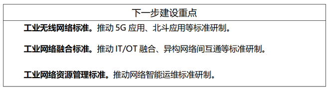 工業(yè)無線網(wǎng)絡(luò)標(biāo)準(zhǔn)主要包括無線局域網(wǎng)(WLAN)、無線可尋址遠(yuǎn)程傳感器高速通道(WirelessHART)、用于工廠自動化/過程自動化的工業(yè)無線網(wǎng)絡(luò)(WIA-FA/PA)、窄帶物聯(lián)網(wǎng)(NB-IoT)、5G應(yīng)用、北斗應(yīng)用等標(biāo)準(zhǔn)。工業(yè)有線網(wǎng)絡(luò)標(biāo)準(zhǔn)主要包括現(xiàn)場總線、工業(yè)以太網(wǎng)、工業(yè)無源光纖網(wǎng)絡(luò)(xPON)、工業(yè)綜合布線、單對線以太網(wǎng)等標(biāo)準(zhǔn)。工業(yè)網(wǎng)絡(luò)融合標(biāo)準(zhǔn)主要包括確定性網(wǎng)絡(luò)(DetNet)、時間敏感網(wǎng)絡(luò)(TSN)、信息技術(shù)/運營技術(shù)(IT/OT)融合、異構(gòu)網(wǎng)絡(luò)間互通、IPv6+、高可靠組網(wǎng)等標(biāo)準(zhǔn)。工業(yè)網(wǎng)絡(luò)資源管理標(biāo)準(zhǔn)主要包括網(wǎng)絡(luò)地址管理、網(wǎng)絡(luò)頻譜管理、網(wǎng)絡(luò)智能運維等標(biāo)準(zhǔn)。