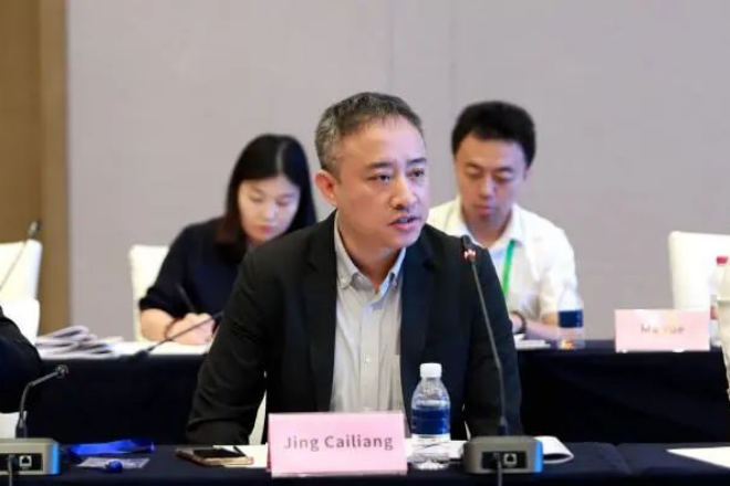 圖為馮超介紹中國鋼鐵綠色低碳創新進展并做交流發言