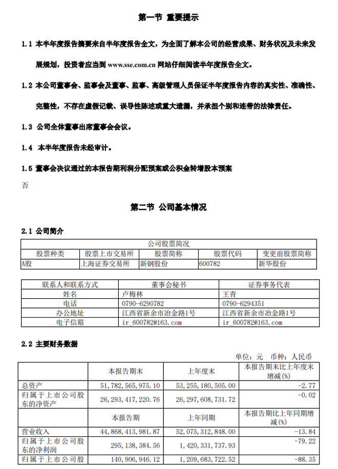 新鋼股份:新鋼股份2023年半年度報告摘要