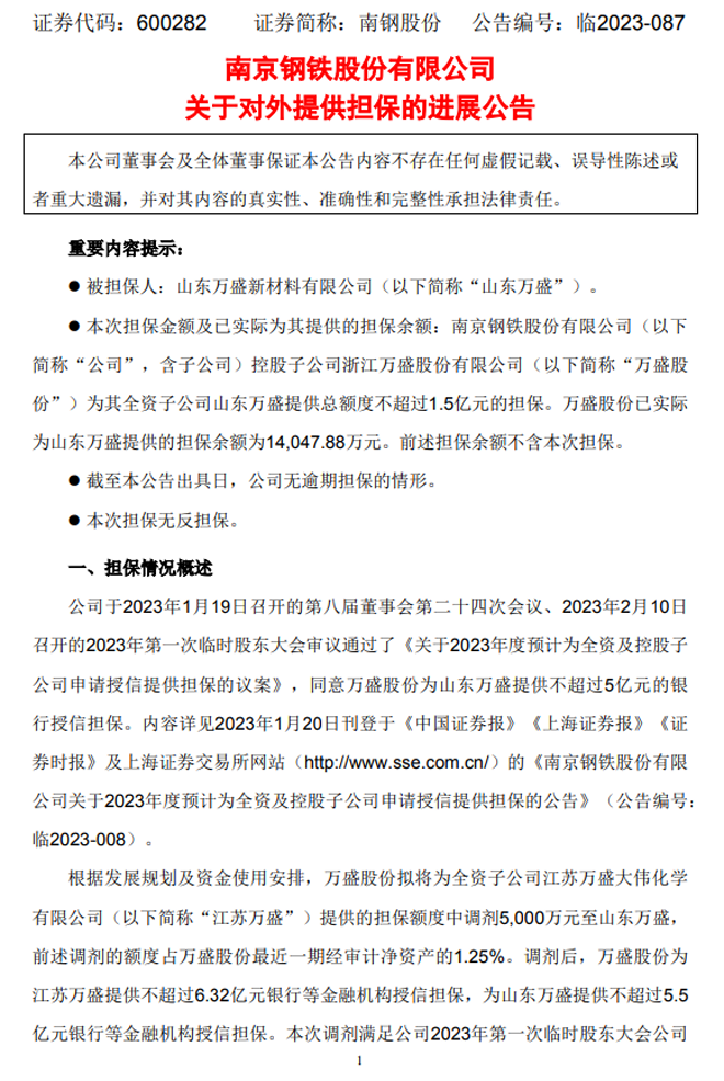南鋼股份:南京鋼鐵股份有限公司關于對外提供擔保的進展公告
