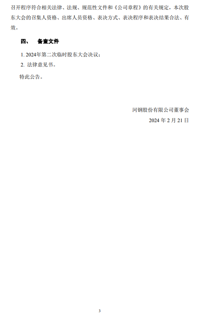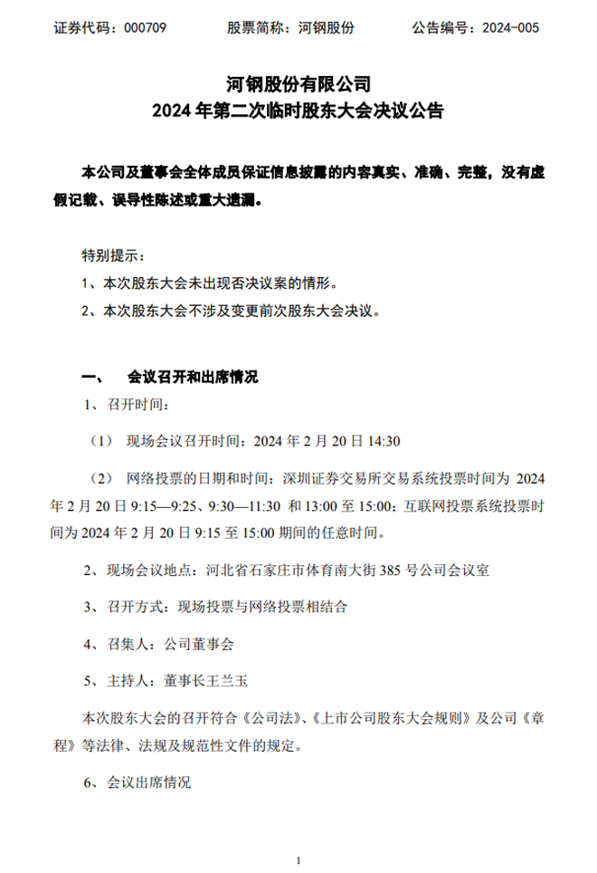 河鋼股份:2024年第二次臨時股東大會決議公告